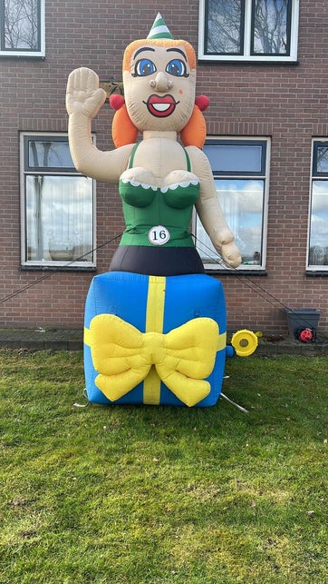 Verras de jarige job met deze sterke pop van 3,5 meter hoog. Natuurlijk geschikt voor alle leeftijden.