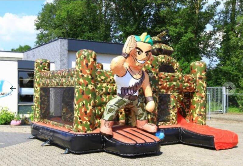 De inflatable heeft veel speelmogelijkheden met leuke objecten op het springvlak en een coole glijbaan. De Multiplay Soldaat heeft opvallende 3D objecten op het springkussen en de inflatable is passend bij het thema vormgegeven. De kinderen komen langs allerlei afbeeldingen en kleurrijke obstakels, wat het thema helemaal compleet maakt.