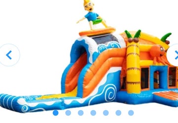 Beleef een wild surfavontuur met het spectaculaire Multiplay Super Beach Springkussen! Voel de zomerse vibes terwijl je speelt tussen de golven, obstakels en vrolijke zeedieren. Klim naar de top van het strand thema springkussen en surf soepel naar beneden via de glijbaan. Dit opvallende springkussen, met een grote surfer bovenop, neemt je mee naar het strand, compleet met palmbomen en een azuurblauwe zee.